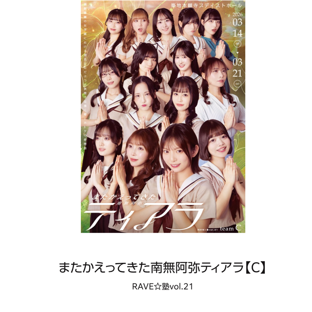 フォトブックCチーム ¥2,000 在庫あり フォトブックCチーム個 お買い物カゴに追加 商品コード: RV21C051 カテゴリー: また南無(Cチーム) タグ: フォトブック, 通販限定 説明 関連商品 東条澪【A4】 ¥1,000 オプションを選択 この商品には複数のバリエーションがあります。 オプションは商品ページから選択できます 工藤ひなき【L版】 ¥1,000 オプションを選択 この商品には複数のバリエーションがあります。 オプションは商品ページから選択できます 茜紬うた【L版】 ¥1,000 オプションを選択 この商品には複数のバリエーションがあります。 オプションは商品ページから選択できます 藤水咲桜【アクリルスタンド】 ¥3,000 お買い物カゴに追加
